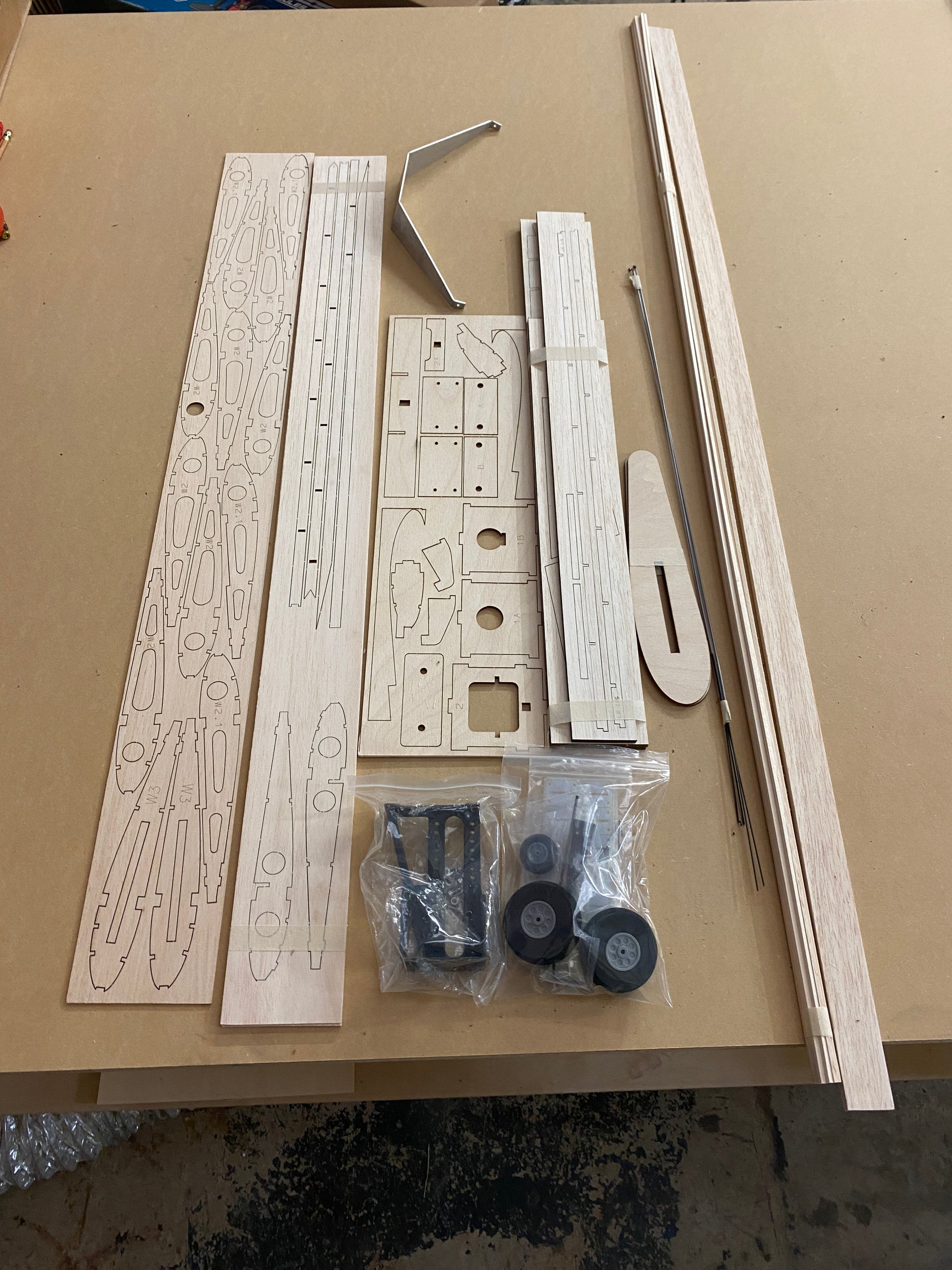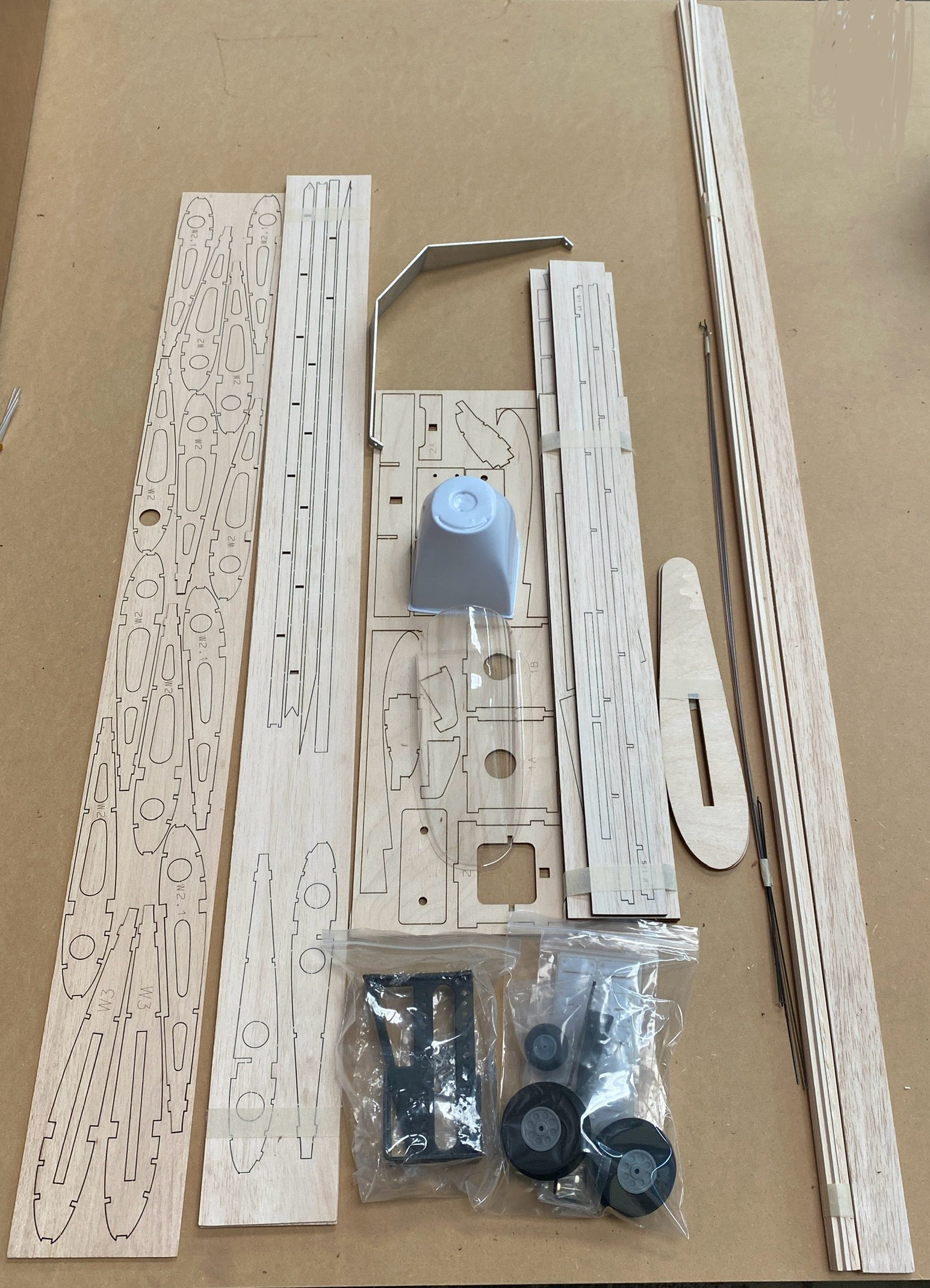 Kit includes, high quality laser cut balsa and plywood, all the servo to control surface connecting hardware, landing gear, canopy, and cowling. (It does not include, covering, electronics, motor, or radio gear.)